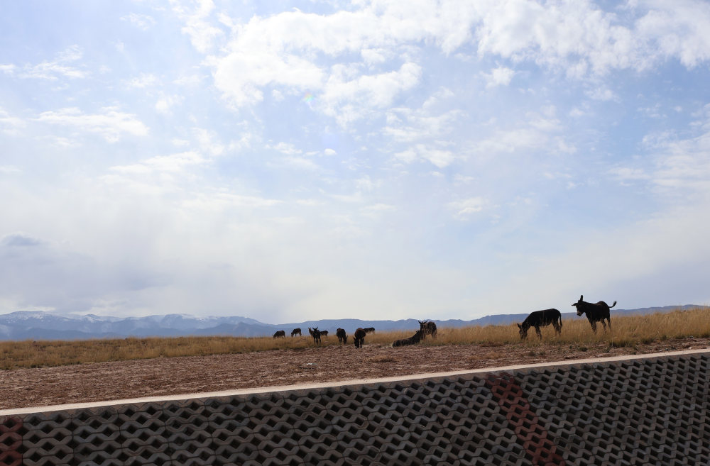 16日,焉支山下,幾頭毛驢正悠閑地覓食。新華社記者 劉雅萱 攝