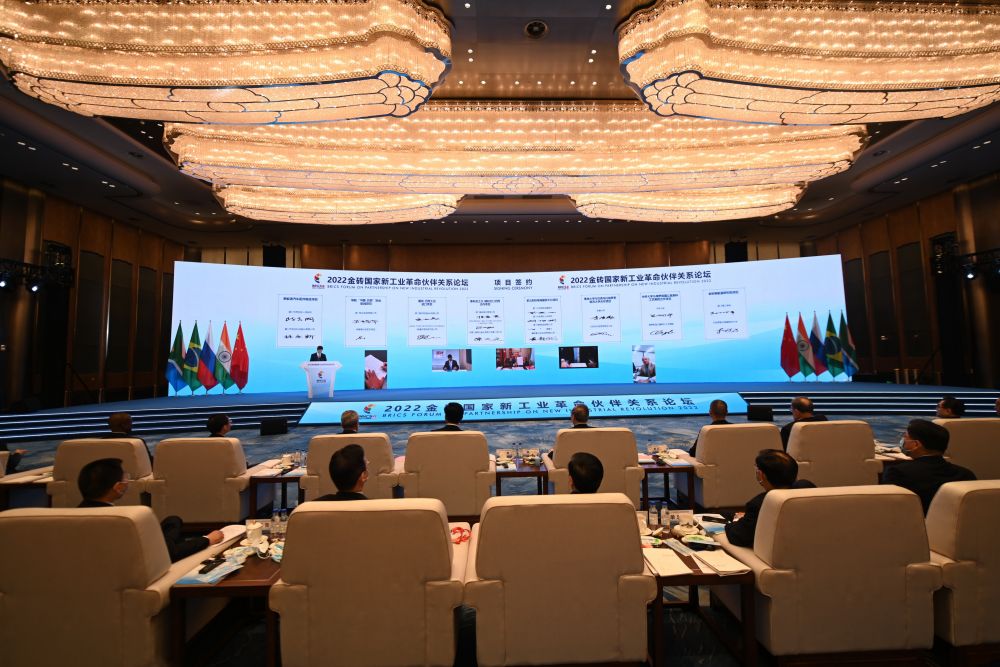 這是2022年9月7日拍攝的金磚國家新工業(yè)革命伙伴關(guān)系創(chuàng)新基地項(xiàng)目簽約儀式現(xiàn)場。新華社記者林善傳攝