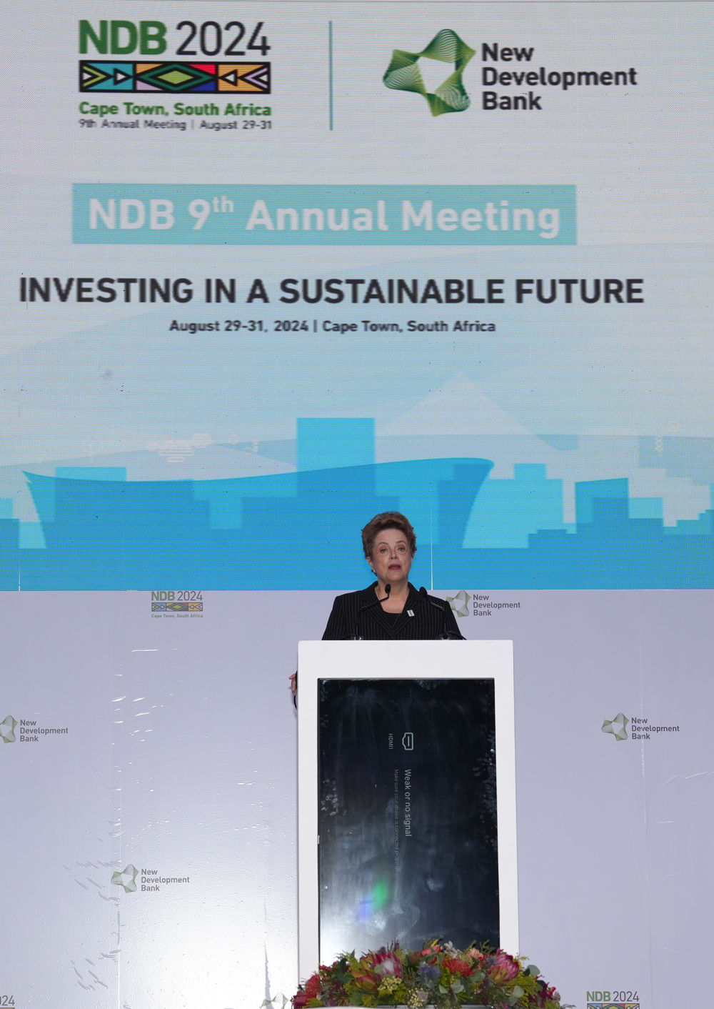 8月30日,在南非開普敦,新開發(fā)銀行行長羅塞芙在該行第九屆理事會年會開幕式上致辭。新華社記者王雷攝
