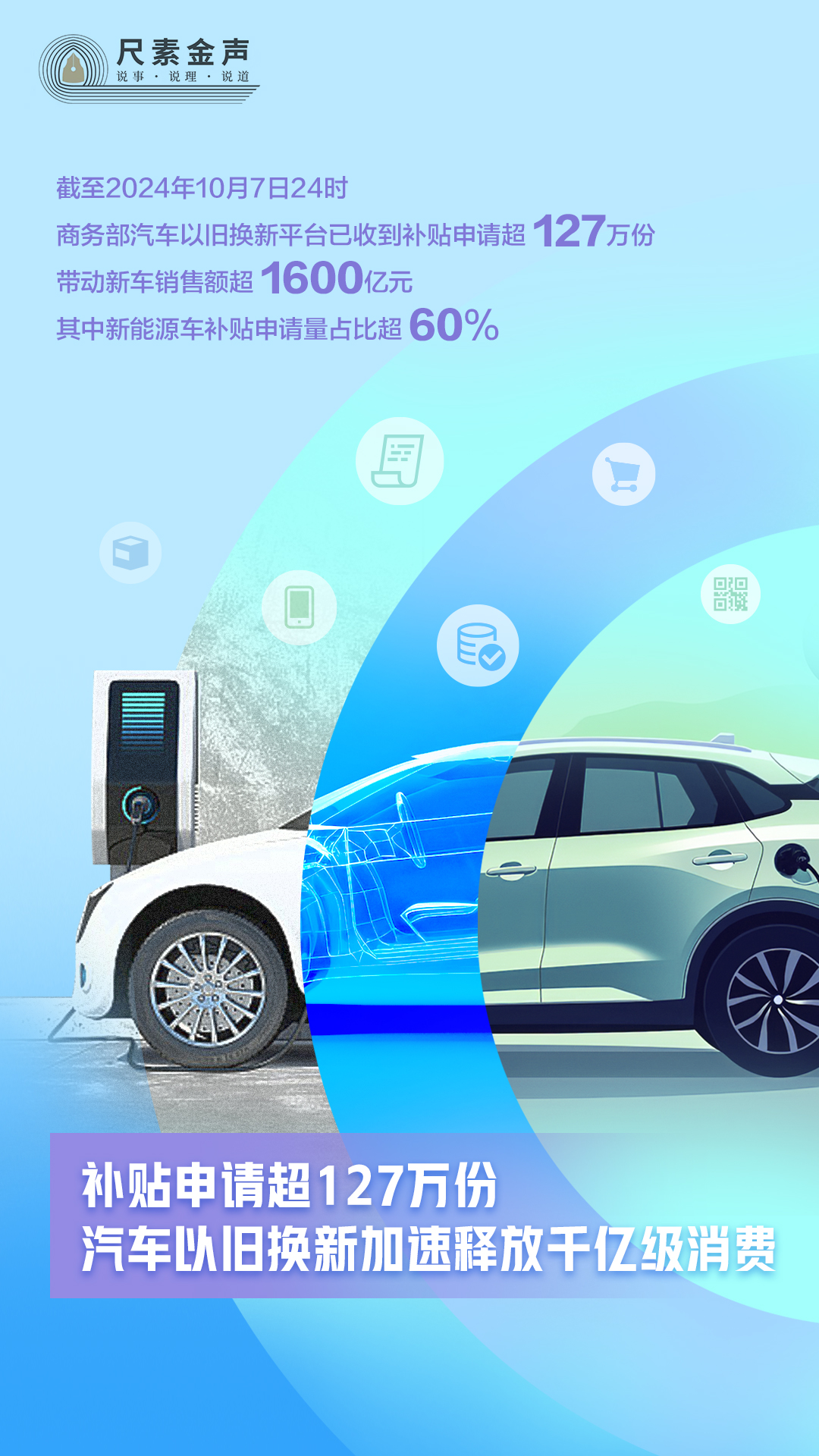 數(shù)據(jù)顯示,截至10月7日24時(shí),商務(wù)部汽車以舊換新平臺(tái)已收到補(bǔ)貼申請(qǐng)超127萬份,帶動(dòng)新車銷售額超1600億元,其中新能源車補(bǔ)貼申請(qǐng)量占比超60%。1—8月,全國報(bào)廢汽車回收量比上年同期增長42.4%,特別是汽車以舊換新政策實(shí)施以來的5月、6月、7月和8月,同比增幅分別達(dá)55.6%、72.9%、93.7%和73.8%。