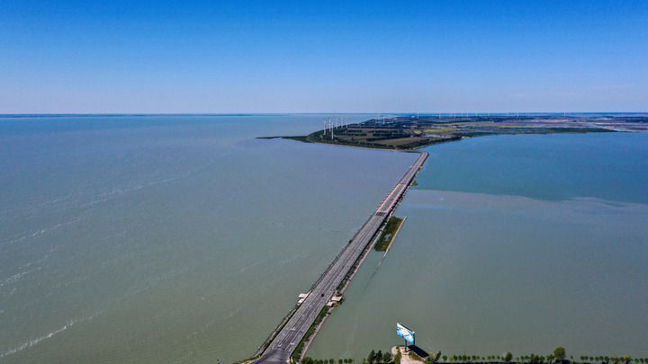 這是2024年8月26日拍攝的查干湖景色(無(wú)人機(jī)照片)。新華社記者 張楠 攝