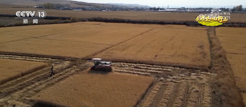 在延吉市朝陽川鎮(zhèn)太興村的稻田里,村民駕駛著收割機在田間作業(yè),收割、脫粒、裝車,一氣呵成,一大片稻田很快就收割完成。