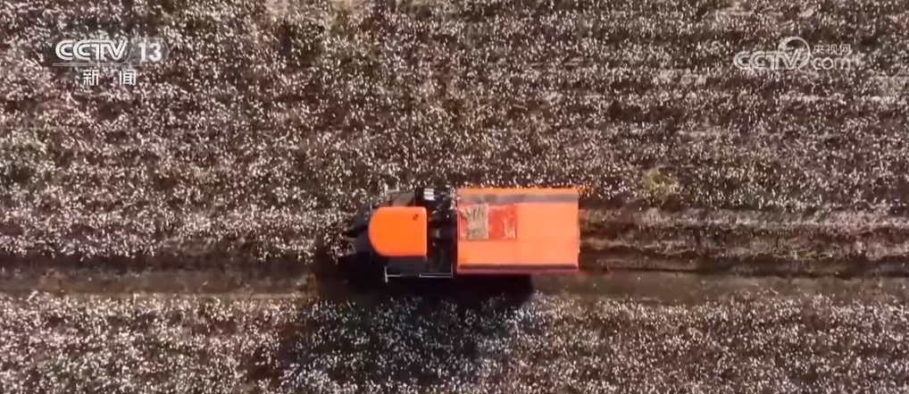 在無棣縣西小王鎮(zhèn)的棉田里,采棉機械正將棉花從棉稈上脫離,并通過氣流將棉花推送至儲存車廂。每臺采棉機械一天的作業(yè)量是過去800個工人一天的勞動成果,成本也從人工采摘每畝720元,降到了機械化采摘的每畝120元。