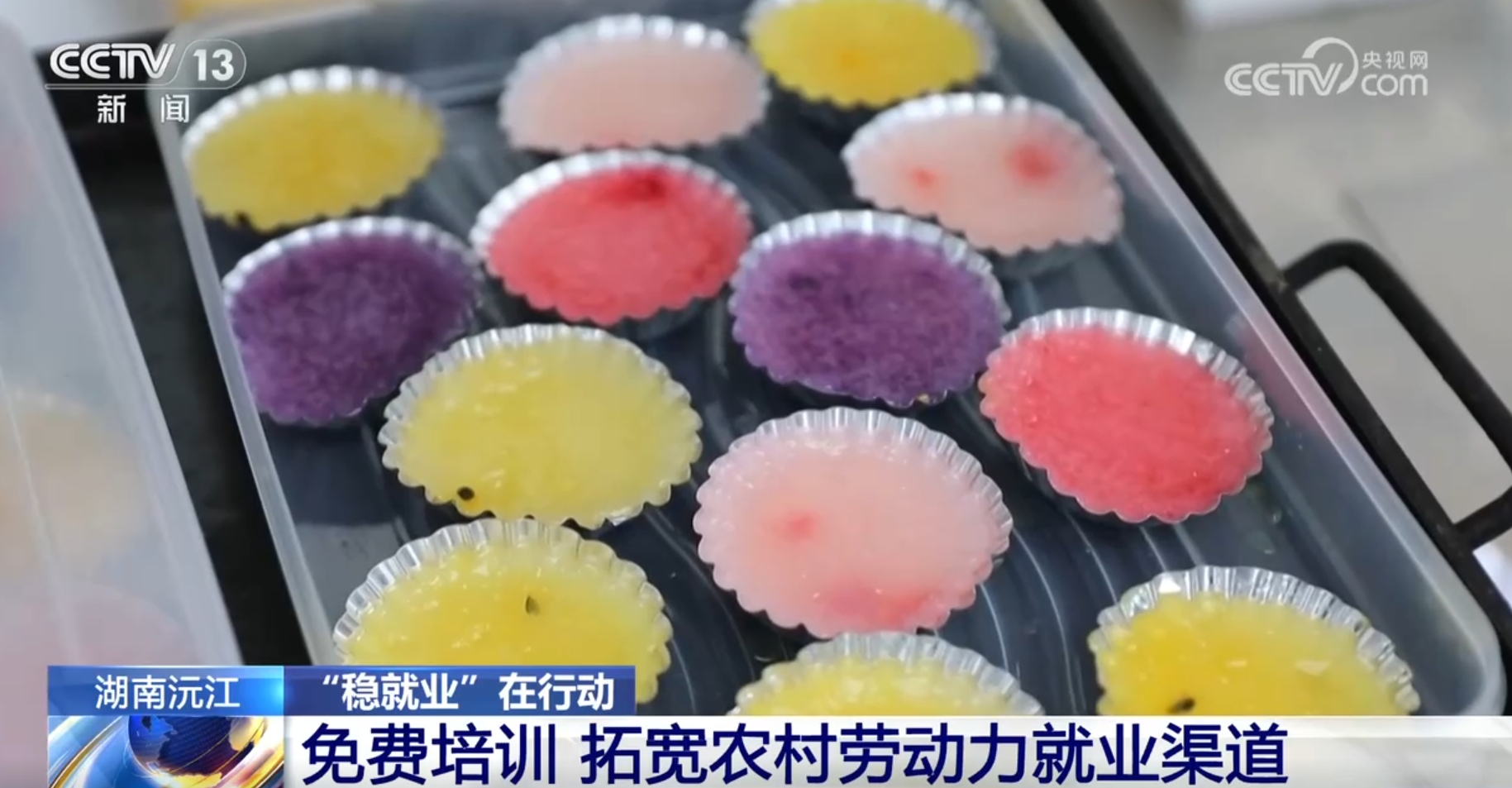 在湖南沅江人社局定期舉辦的免費(fèi)職業(yè)技能培訓(xùn)班上,學(xué)員們正在學(xué)習(xí)蛋糕制作。