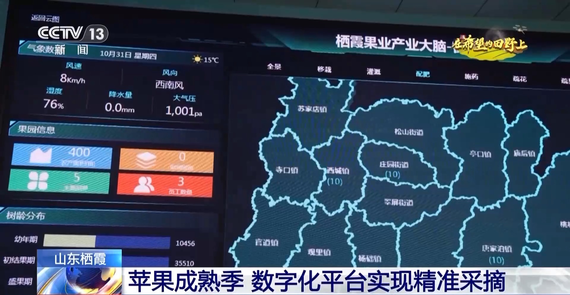 棲霞市供銷合作社聯(lián)合社負責(zé)人 李國勇:通過這個大屏,我們可以清楚地看到果樹的生長情況,平臺也會將果樹生長情況相關(guān)信息通報給果農(nóng)進行精準(zhǔn)采摘。