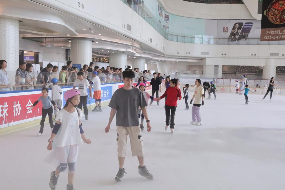位于上海市閔行區(qū)的華潤上海萬象城冰場(chǎng),今年暑假日均接待量超過340人次,其中約80%是前來訓(xùn)練的青少年學(xué)員。上海市民王蓓的女兒長期在此訓(xùn)練,商圈餐飲、游樂、電影院、書店、購物等業(yè)態(tài)齊全,女兒滑冰訓(xùn)練結(jié)束后,一家人在此休閑一整天。