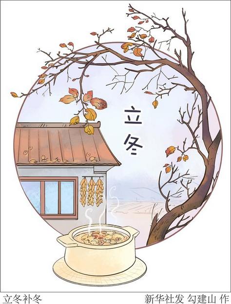 立冬時節(jié),各地有豐富多彩的傳統(tǒng)習(xí)俗。比如,民間有祭祖、飲宴、卜歲等習(xí)俗,以時令佳品向祖靈祭祀,祈求來年是豐年;還有“補冬”,北方有“立冬補冬,補嘴空”的諺語,人們習(xí)慣在立冬這天吃餃子,因為餃子外形似耳朵,人們認(rèn)為吃了它,冬天耳朵就不受凍。此外,還有釀黃酒、吃生蔥等。