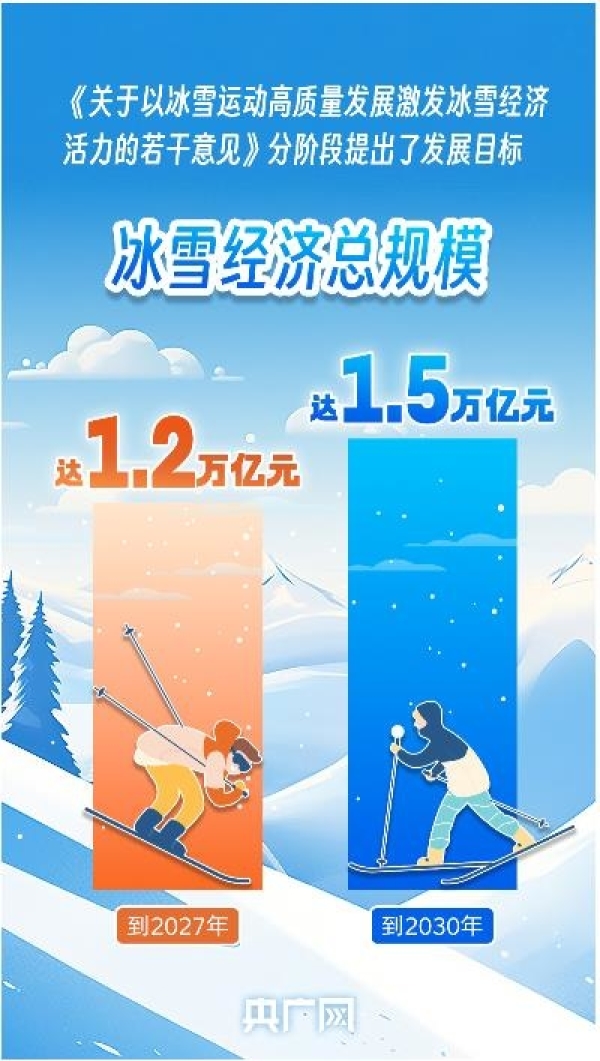 近日,國(guó)務(wù)院辦公廳公開(kāi)發(fā)布《關(guān)于以冰雪運(yùn)動(dòng)高質(zhì)量發(fā)展激發(fā)冰雪經(jīng)濟(jì)活力的若干意見(jiàn)》(以下簡(jiǎn)稱(chēng)《意見(jiàn)》),分階段提出發(fā)展目標(biāo):到2027年,冰雪運(yùn)動(dòng)場(chǎng)地設(shè)施更加完善,服務(wù)水平顯著提升,冰雪運(yùn)動(dòng)更加廣泛開(kāi)展,冰雪經(jīng)濟(jì)總規(guī)模達(dá)1.2萬(wàn)億元。到2030年,冰雪經(jīng)濟(jì)主要產(chǎn)業(yè)鏈條實(shí)現(xiàn)高水平協(xié)調(diào)融合發(fā)展,冰雪消費(fèi)成為擴(kuò)大內(nèi)需的重要增長(zhǎng)點(diǎn),冰雪經(jīng)濟(jì)總規(guī)模達(dá)1.5萬(wàn)億元。