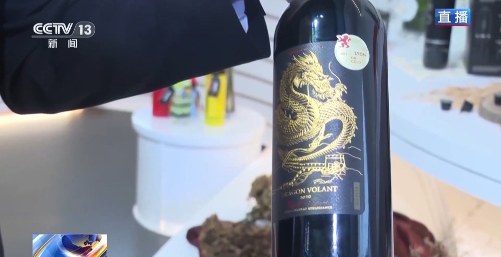 要特別介紹的是一款干紅葡萄酒。這款葡萄酒,酒瓶里面,是來自法國波爾多一家葡萄酒莊園陳釀18個月的美酒;而酒瓶外面,也是一個亮點,是由中國和法國設(shè)計師聯(lián)合設(shè)計的極具中國文化特色的金龍和長城圖案包裝,這不僅是一瓶佳釀,更是中法文化交流、友好往來的見證。