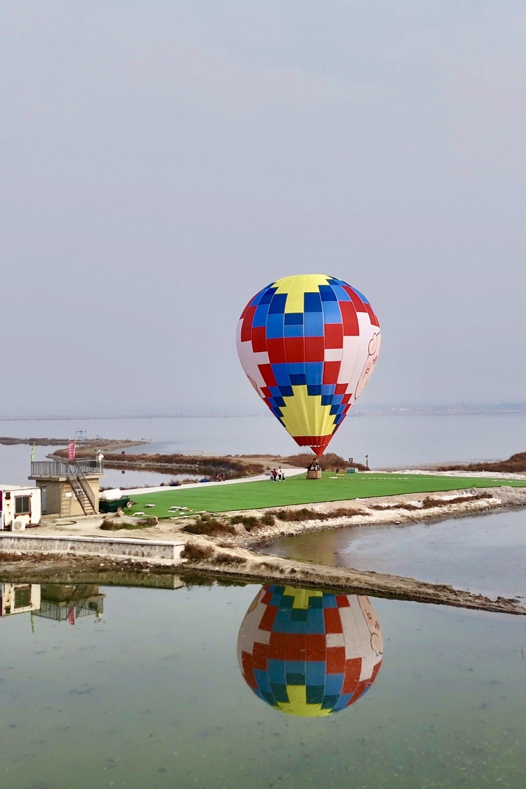 運(yùn)城七彩鹽湖景區(qū)的熱氣球游覽項(xiàng)目。澎湃新聞?dòng)浾?陳鑫露 攝