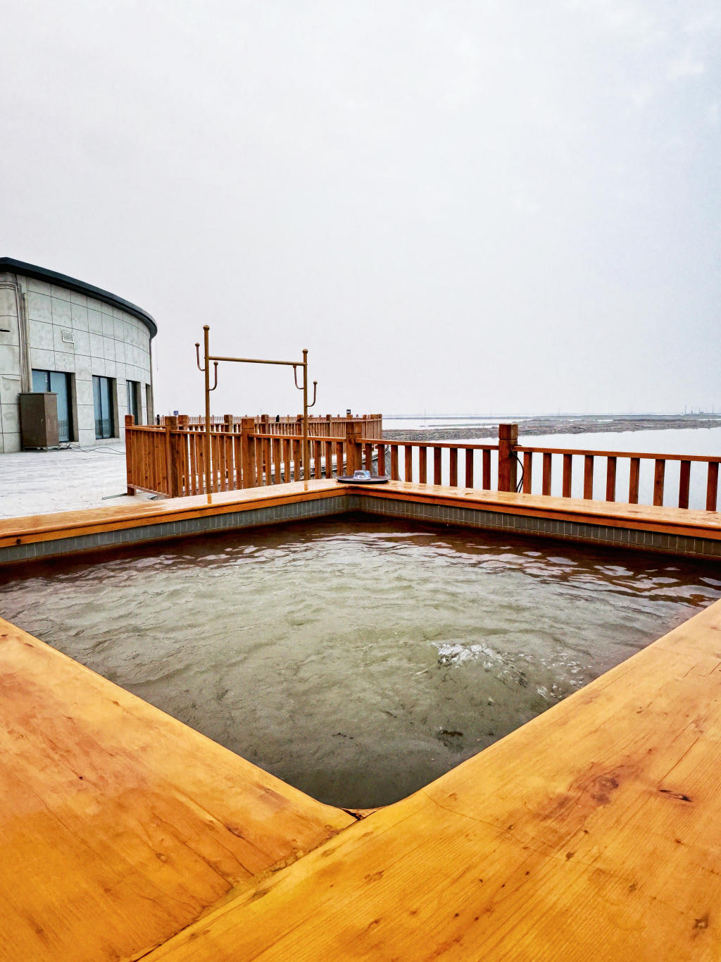 運(yùn)城鹽湖打造出了以鹽為本的“五絕”康養(yǎng)休閑體驗(yàn)之一——醫(yī)用溫泉水療。這里的溫泉水源自鹽湖中心腹地2121米深處,為氟、鍶型地?zé)岬V泉水,醫(yī)用價(jià)值高。澎湃新聞?dòng)浾?金向玉 攝