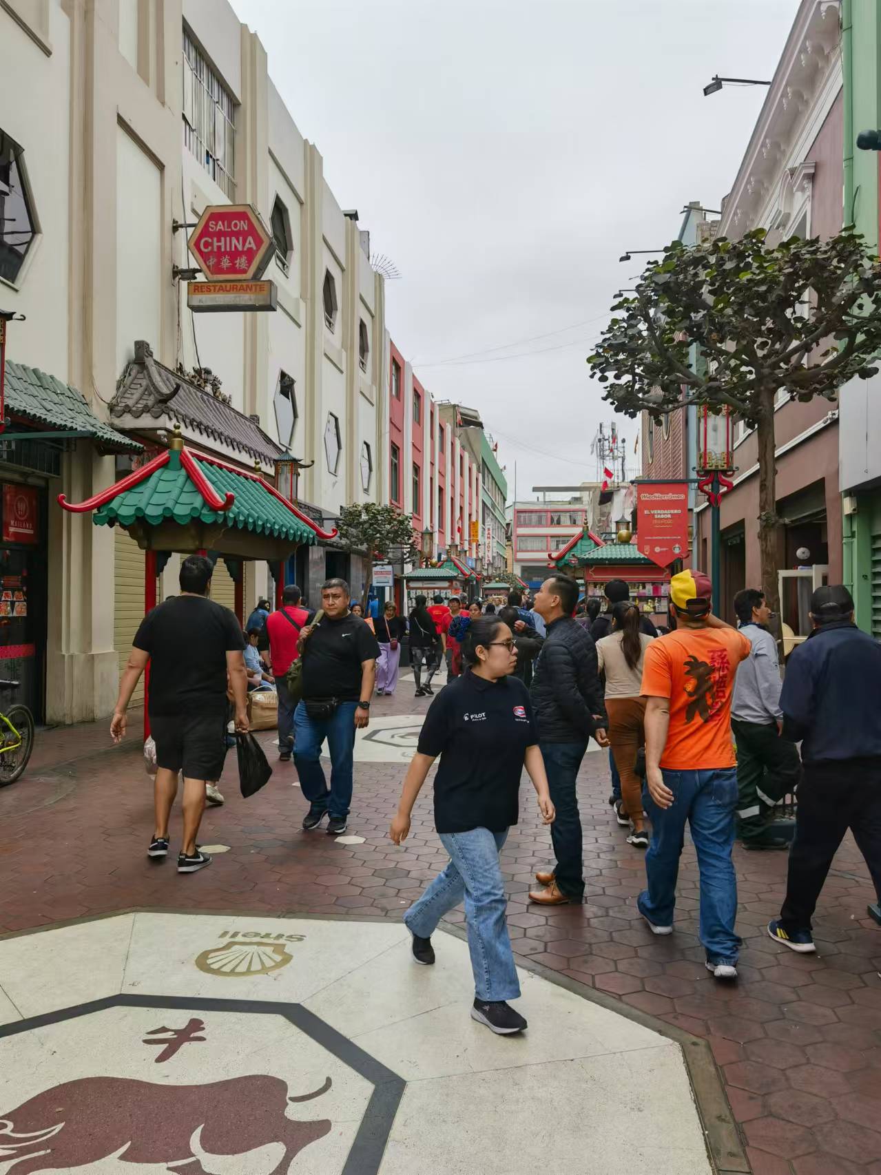 秘魯首都利馬市中心的唐人街上,人頭攢動,大量的當(dāng)?shù)孛癖姷疆?dāng)?shù)匦蓍e購物。這里的中國元素也是處處可見。