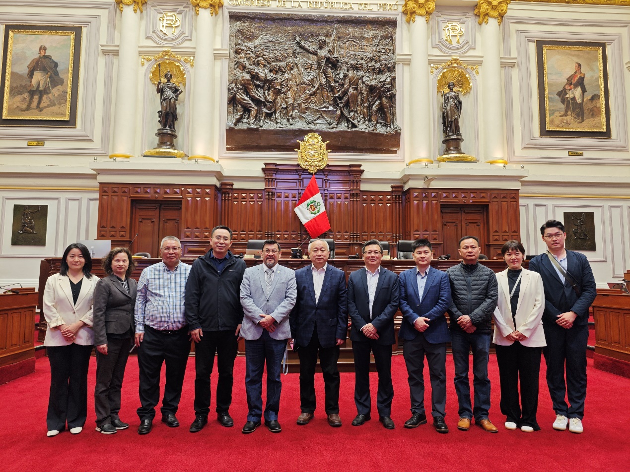 11月7日,中國新聞社采訪團(tuán)一行在秘魯國會采訪秘魯國會議員兼秘中協(xié)會友好聯(lián)盟主席路易斯·科爾德羅·楊·戴(左五)。