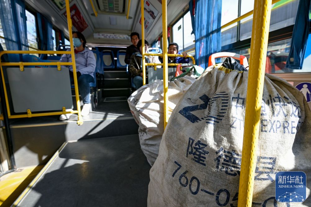 11月9日,隆德縣一輛公交車(chē)上裝有寄往鄉(xiāng)村的快遞。