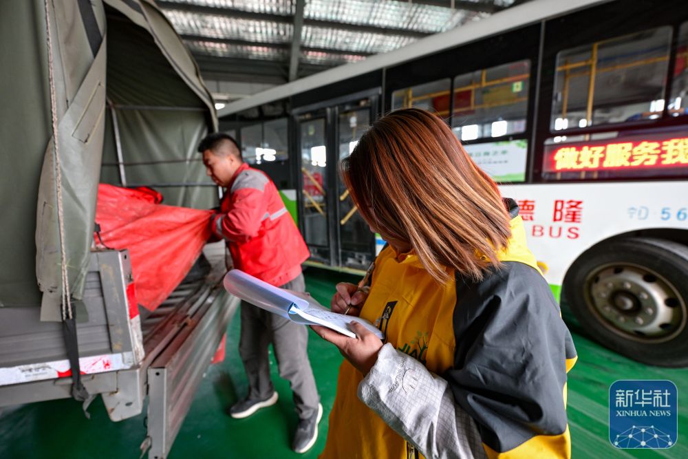 11月9日,一輛載有快遞物品的城鄉(xiāng)公交車(chē)從隆德公交公司倉(cāng)庫(kù)駛出。