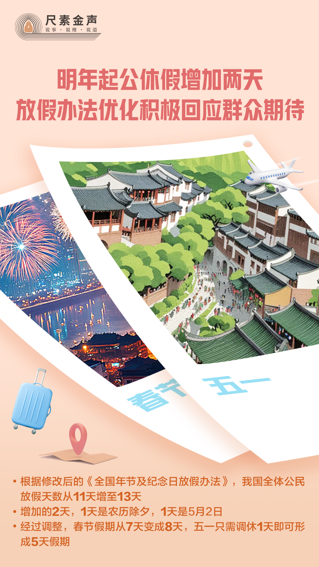 的決定》,并公布2025年部分節(jié)假日安排。“每年多放兩天假”“抓緊買好機票準(zhǔn)備出游”……消息剛一發(fā)布,便受廣泛關(guān)注。" />