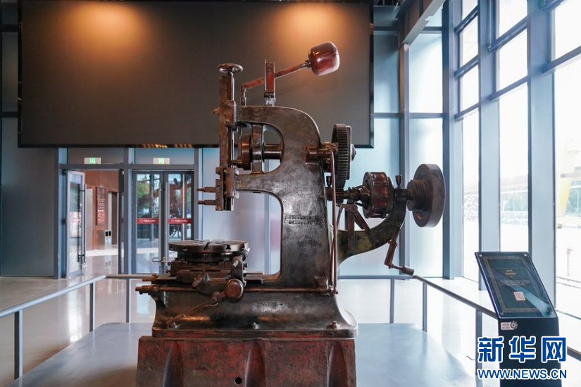 博物館大廳內(nèi)展示的這臺老機床,是法國米盧斯杜克芒公司于1867年制造的插床,為國家一級文物。