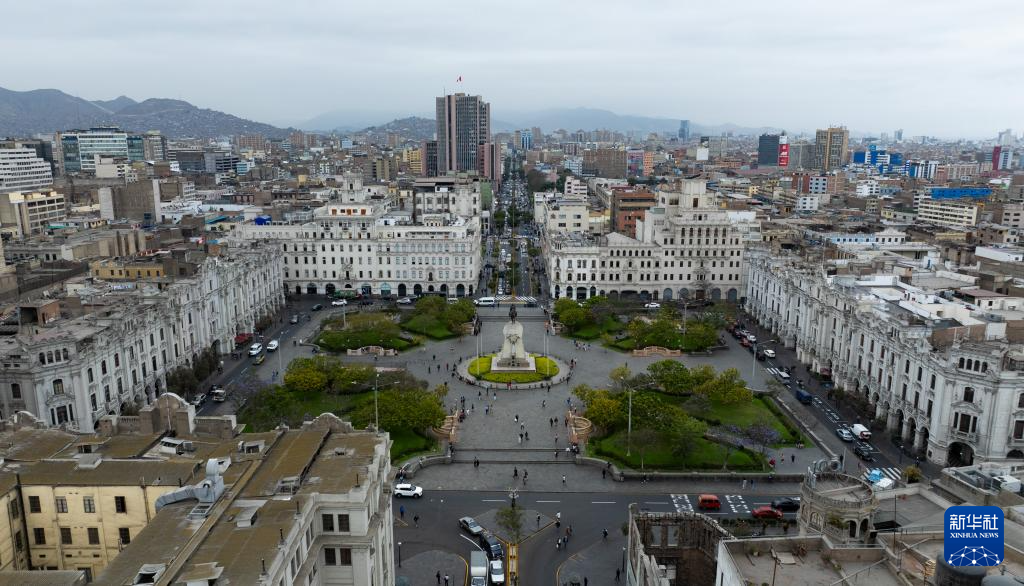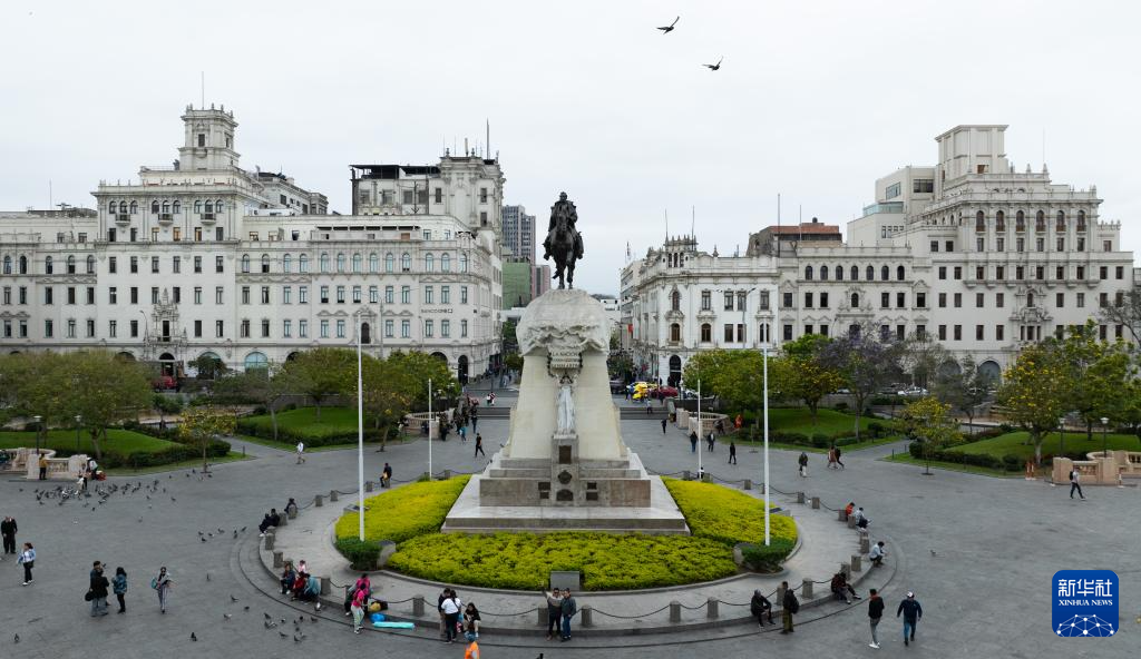 這是11月7日拍攝的秘魯首都利馬老城的圣馬丁廣場(無人機照片)。