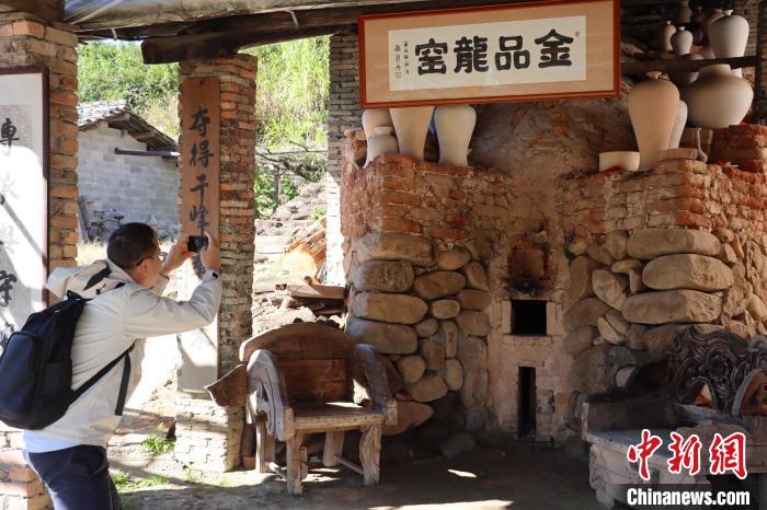 11月8日,浙江龍泉溪頭村,游客打卡古龍窯。 傅飛揚 攝
