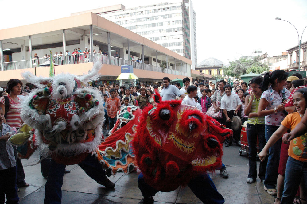 2006年1月28日農(nóng)歷除夕當天,華僑舞獅團在秘魯利馬唐人街上舞獅拜年。