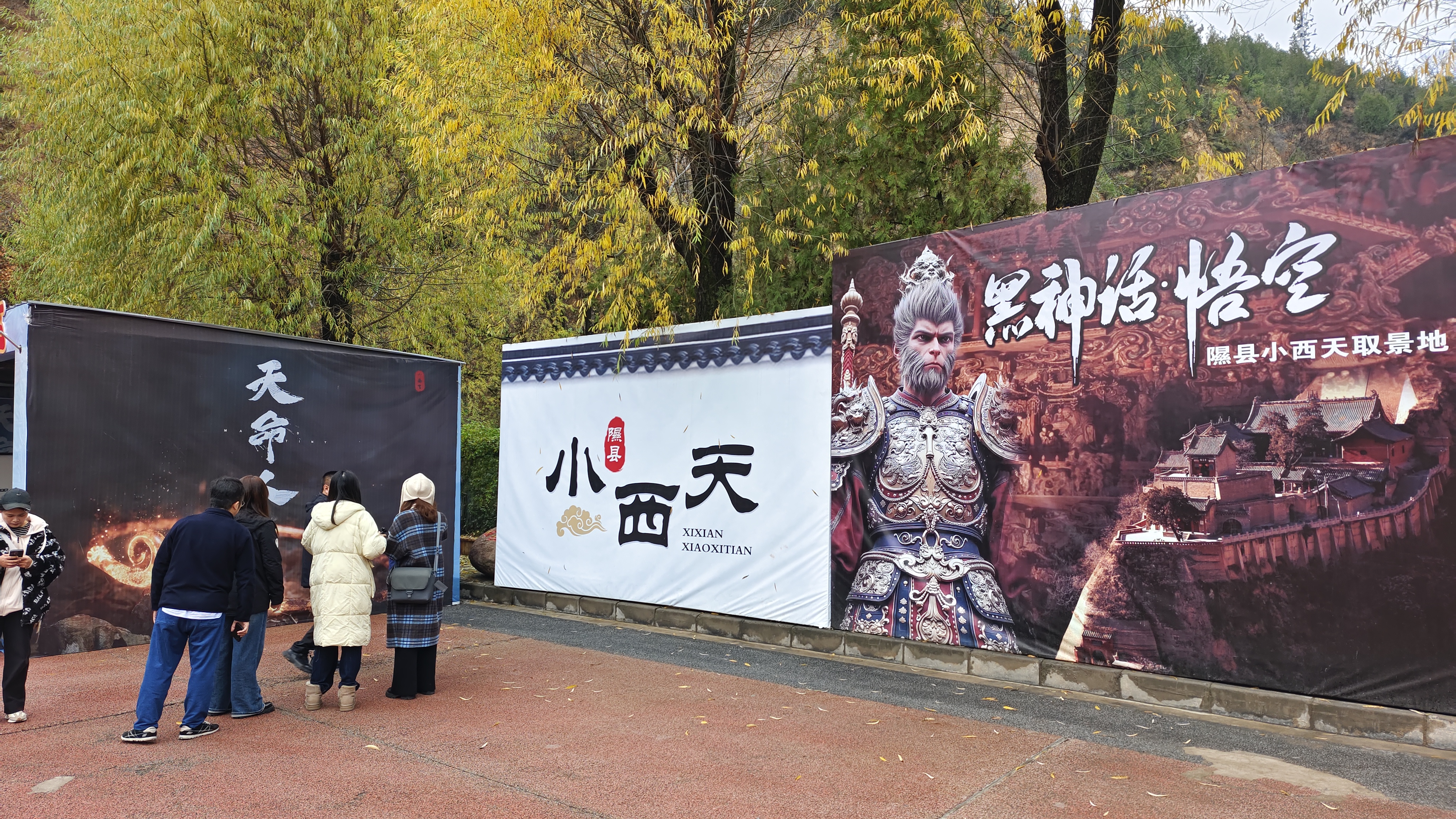 隰縣在小西天景區(qū)設(shè)置了多個(gè)和《黑神話:悟空》有關(guān)的打卡點(diǎn),迎接“天命人”。 澎湃新聞?dòng)浾?王玨瑋 圖