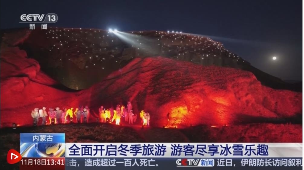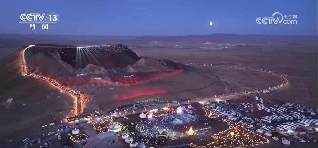 烏蘭察布市的烏蘭哈達火山地質(zhì)公園分布著不同類型、不同規(guī)模的火山30多座,火山群鑲嵌在廣闊的草原之上,被譽為天然的“火山博物館”。為了增強游客的體驗感,這個冬季,當?shù)卮蛟炝颂厣鹕綗艄庑恪?/p>