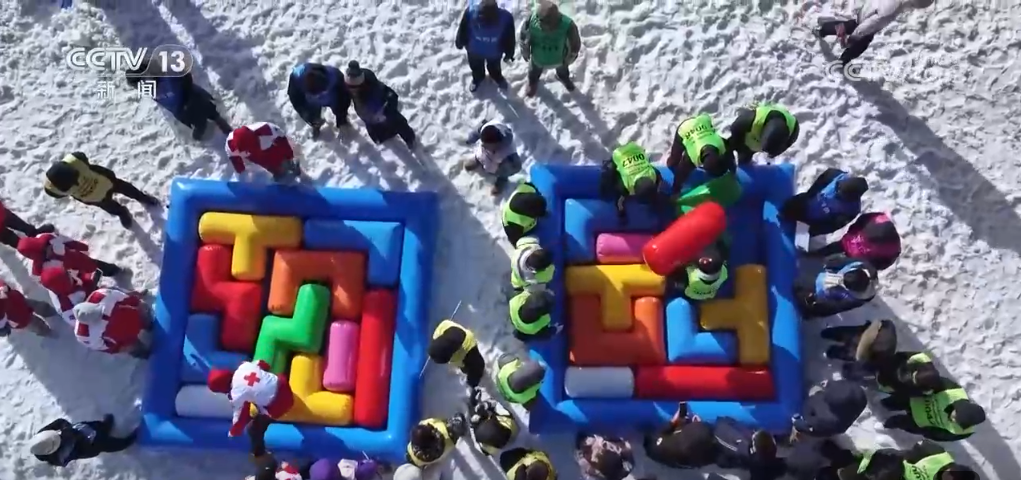 趣味運動會則讓游客零距離接觸冰雪運動,體驗冰雪激情。在集寧大河灣滑雪場,游客們玩起雪上龍舟、雪地旋轉(zhuǎn)齒輪、雪地拔河等多種冰雪項目,盡享運動的樂趣。