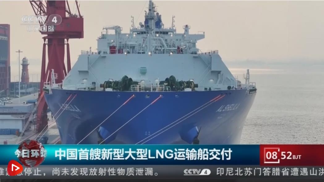 中國自主研制的首艘新型大型LNG液化天然氣運(yùn)輸船11月25日在上海交付國外用戶。這型船采用了國際先進(jìn)的新型貨艙系統(tǒng),一次運(yùn)輸量可滿足一個(gè)城市一個(gè)月的供給需求,填補(bǔ)了中國在該船型建造領(lǐng)域的空白。