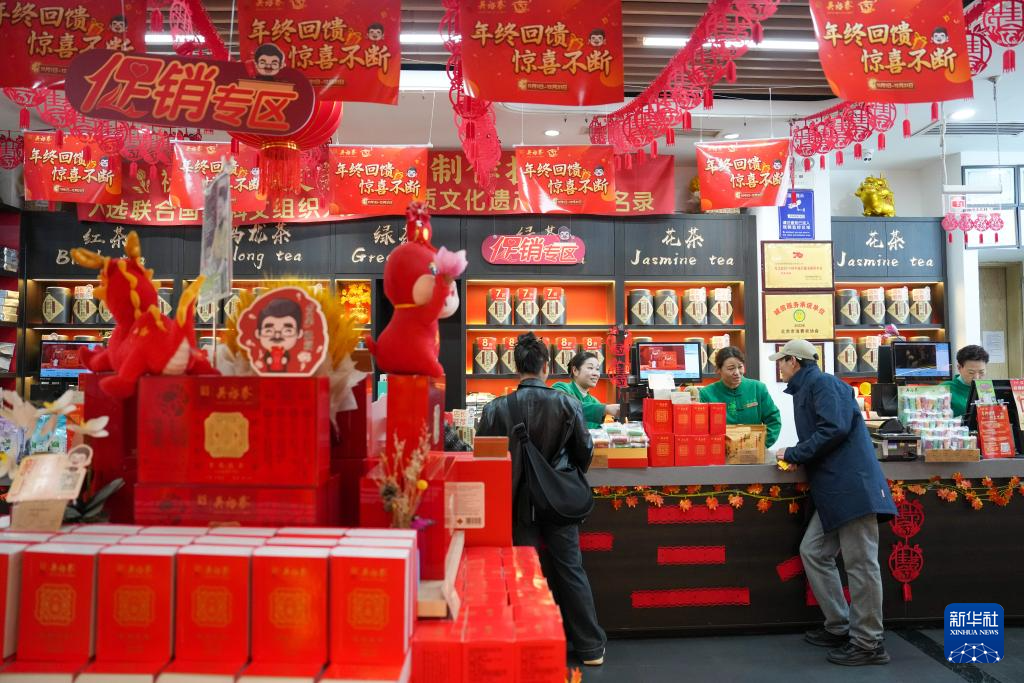 走進(jìn)吳裕泰王府井店,花茶、紅茶、綠茶、巖茶、白茶等各類新品禮盒映入眼簾。清晰的分類、有序的碼放、合理的動(dòng)線,讓顧客一眼就能選中心儀的商品。在二樓,顧客不僅可以品一杯香茗,還能觀賞茶藝表演、嘗試制作抹茶、體驗(yàn)“京繡”“皮影”等活動(dòng)。
