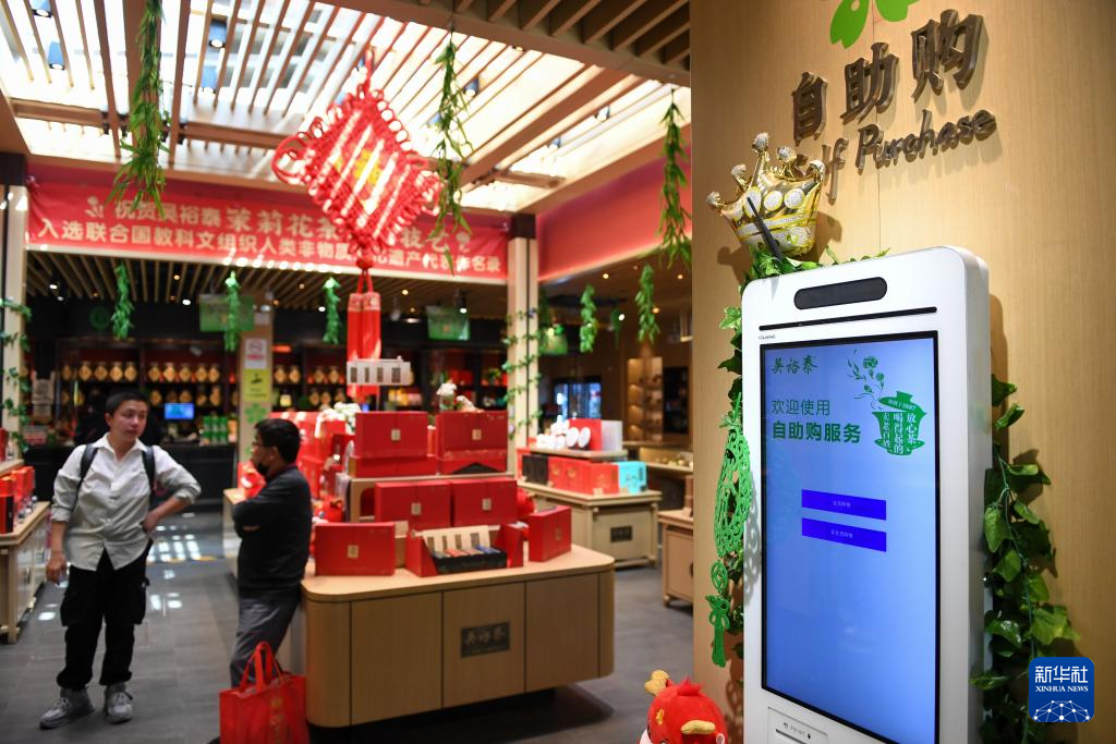 在吳裕泰北新橋總店內(nèi)設(shè)置的自助購(gòu)(4月16日攝)。新華社記者 鞠煥宗 攝