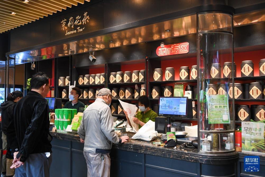 在吳裕泰北新橋總店,顧客在選購(gòu)茉莉花茶(4月16日攝)。新華社記者 鞠煥宗 攝