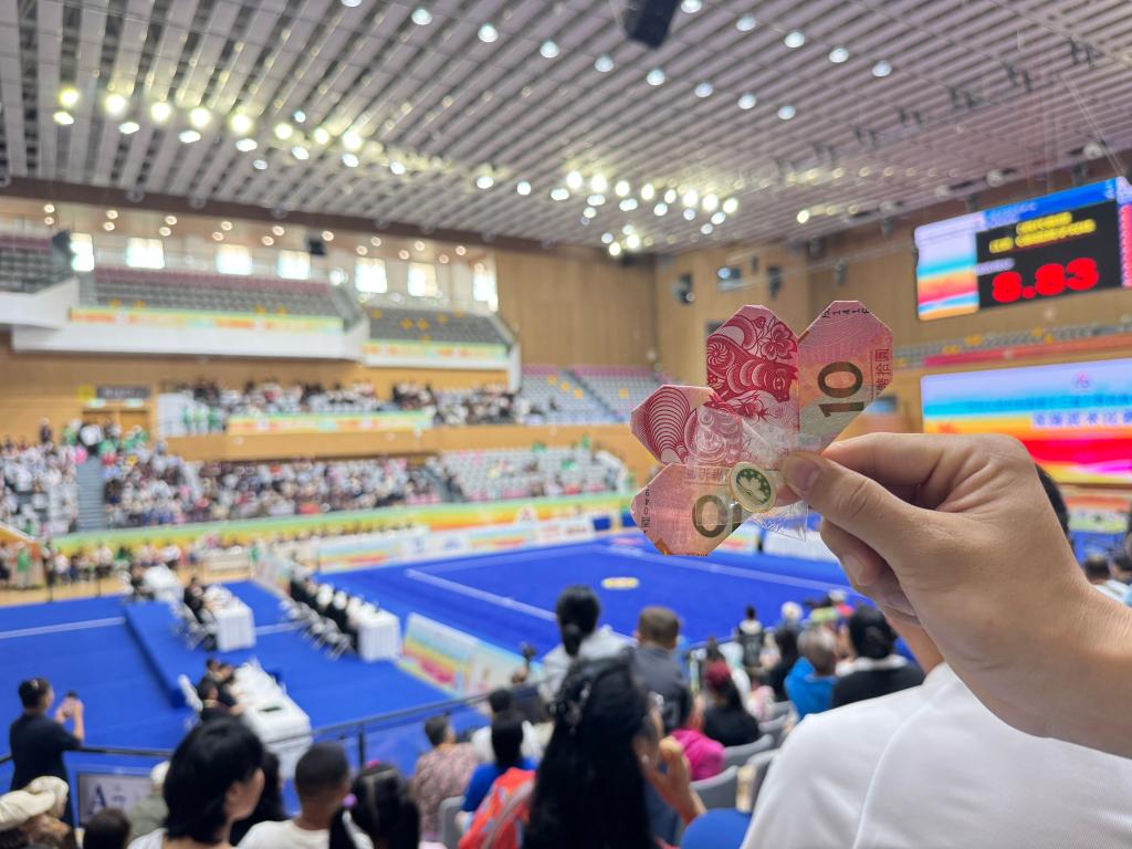 收到“愛心紀(jì)念鈔”,彝族小伙王子豪驚喜之余有些感動(dòng)。兩人很快成了朋友,賽事之外切磋武藝,聊些年輕人間的“家長里短”。