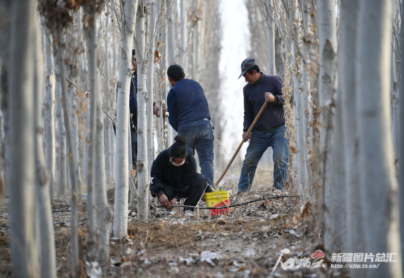 11月28日,護(hù)林員在葉城縣20萬(wàn)畝生態(tài)林基地管護(hù)白楊樹。