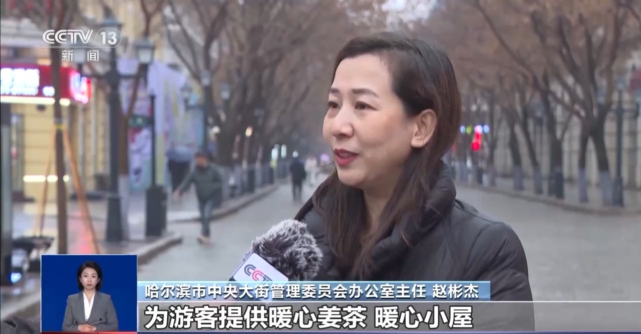 哈爾濱市中央大街管理委員會(huì)辦公室主任 趙彬杰:我們今年主打的就是一個(gè)貼心、細(xì)心,我們號(hào)召街區(qū)的商家企業(yè)為游客提供暖心姜茶、暖心小屋。爭(zhēng)取讓每一位來(lái)到中央大街的游客,在體驗(yàn)冰雪之美的同時(shí),更多感受到“爾濱”的熱情。