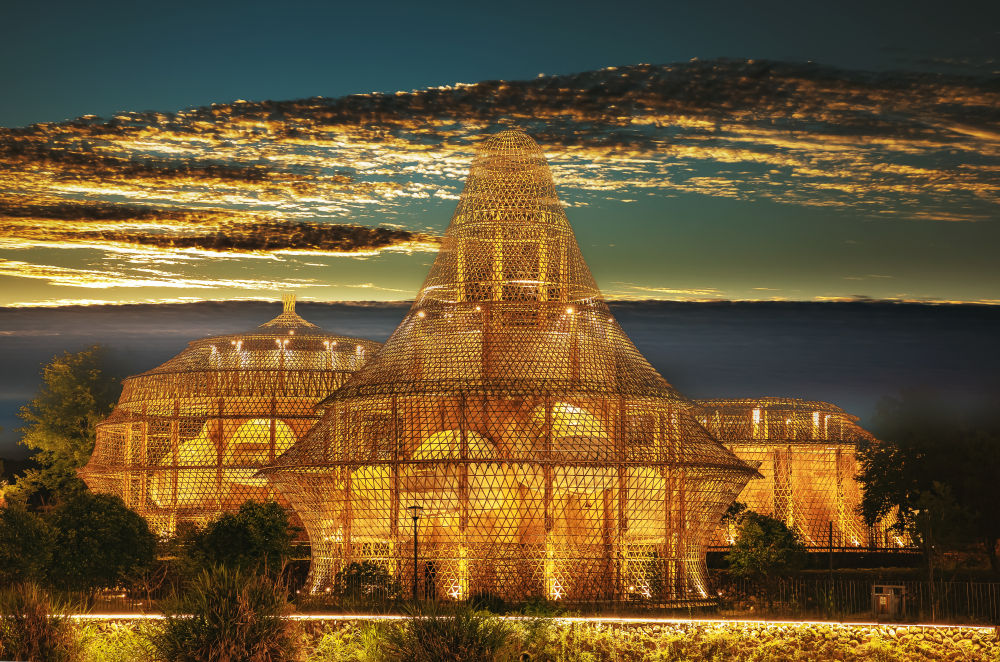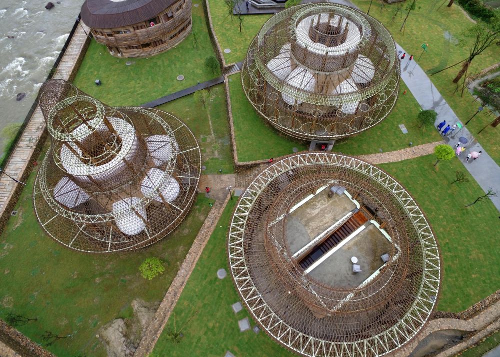 緊接著,設計師們聯(lián)手用竹子打造了一個充滿設計感的竹藝村落——龍泉國際竹建筑文創(chuàng)生活村落。