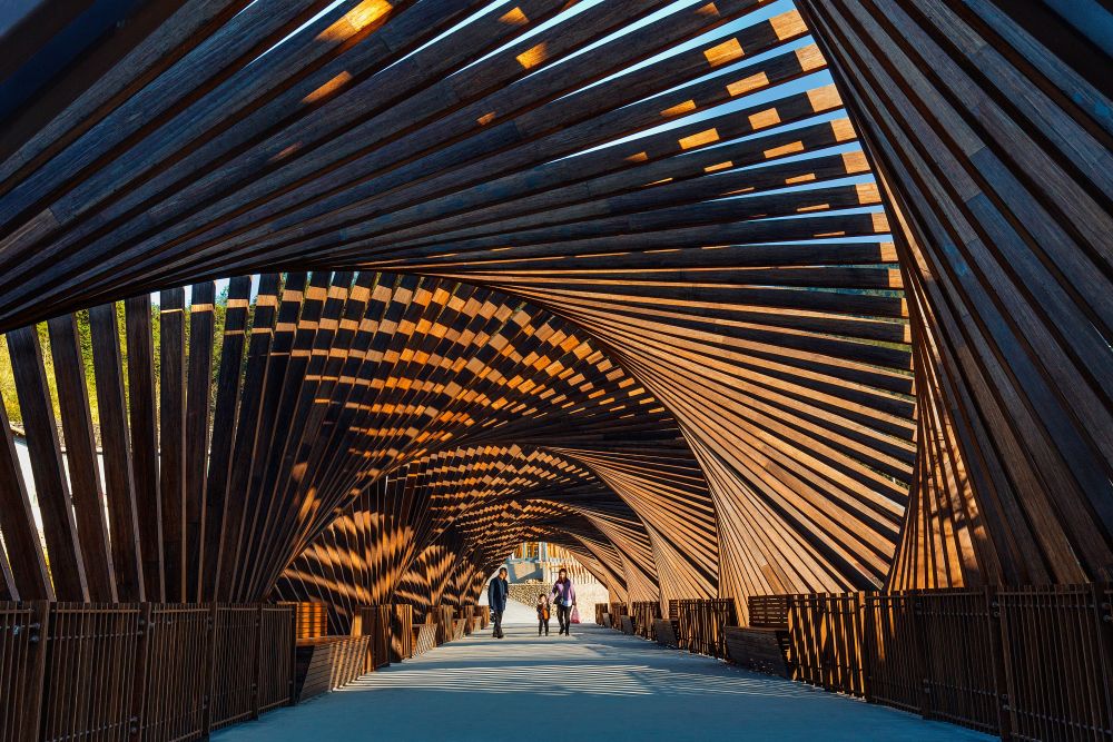 圖為溪頭村國際竹建筑村落16個建筑單體之一“時光隧道橋”。新華社發(fā)