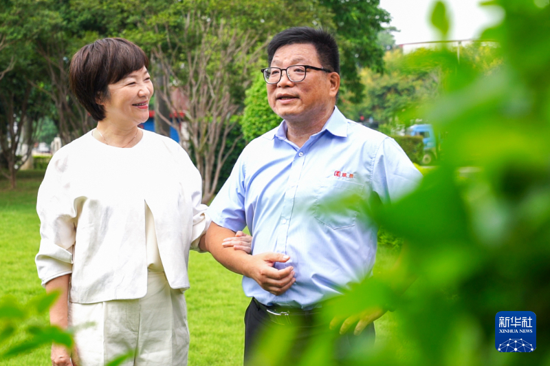 陳富澤和愛人在廠區(qū)綠地聊天。新華網(wǎng) 肖和勇 攝