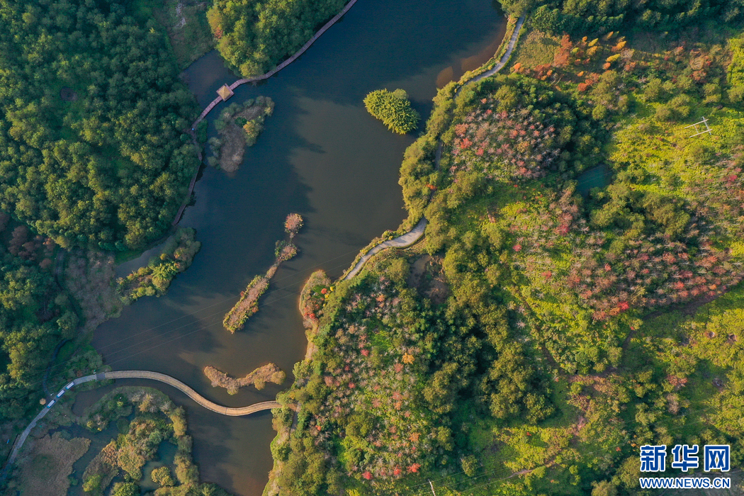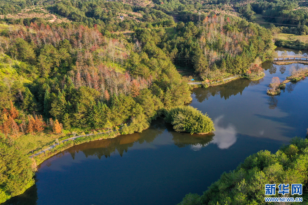 長汀縣水土保持科教園地處河田鎮(zhèn)露湖村,是福建省面積最大的水土保持科教基地(無人機照片)。新華網(wǎng) 肖和勇 攝