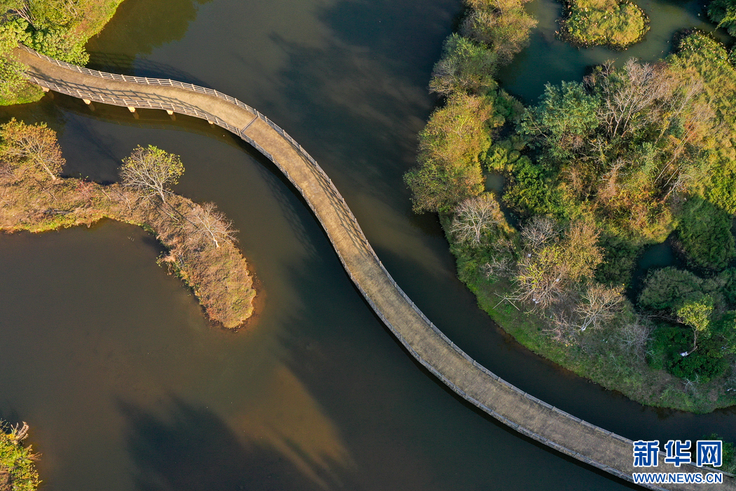這是長汀汀江國家濕地公園冬日景觀。如今這里是國家4A級旅游景區(qū)。經(jīng)過30多年的生態(tài)治理,昔日水土流失重災(zāi)區(qū)已成為風(fēng)光秀麗、林果連片的生態(tài)旅游勝地(無人機照片)。新華網(wǎng) 肖和勇 攝