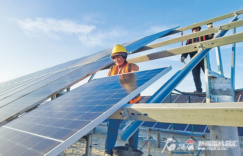 11月以來,在和田地區(qū)洛浦縣萬(wàn)畝“光伏+農(nóng)業(yè)”綜合治沙項(xiàng)目基地,工人們?cè)诩泳o安裝光伏板。今年3月,這個(gè)項(xiàng)目才剛剛動(dòng)工,僅6個(gè)月,萬(wàn)畝沙漠就變得平平整整,一列列光伏支架的底座水泥樁整齊列隊(duì),等待檢閱。