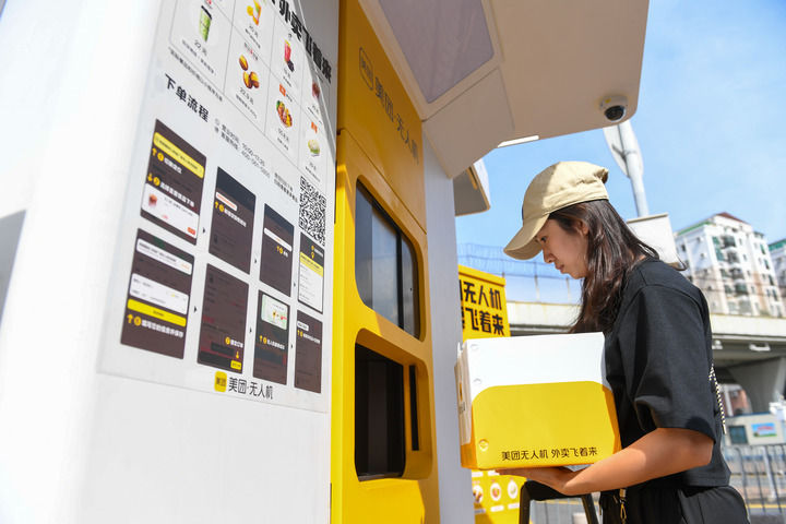 在深圳福田口岸,香港居民使用無(wú)人機(jī)外賣服務(wù)(2024年10月23日攝)。新華社記者 毛思倩 攝