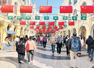 連日來(lái),澳門街頭洋溢著熱烈喜慶的氛圍,慶祝澳門回歸祖國(guó)25周年。