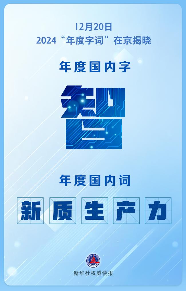 12月20日,“漢語(yǔ)盤(pán)點(diǎn)2024”活動(dòng)在京揭曉“年度字詞”——“智”“新質(zhì)生產(chǎn)力”“變”“人工智能”分別當(dāng)選2024年度國(guó)內(nèi)字、國(guó)內(nèi)詞、國(guó)際字、國(guó)際詞。