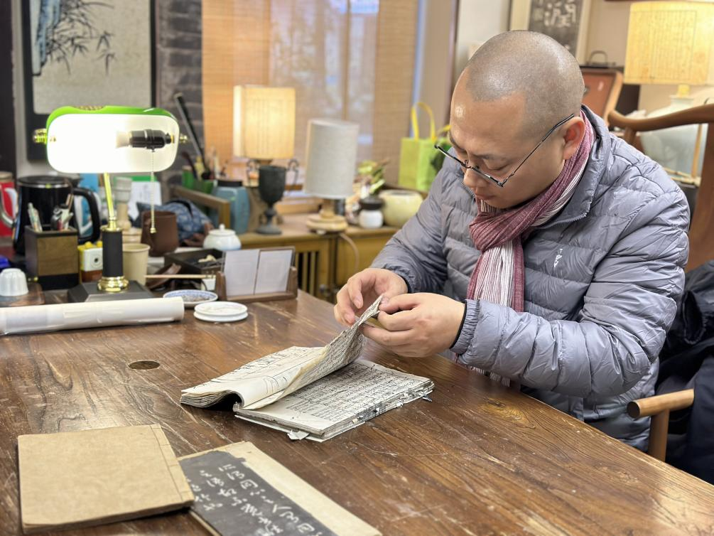 王軍修復(fù)古籍(央廣網(wǎng)記者 顧煬威 攝)