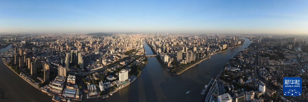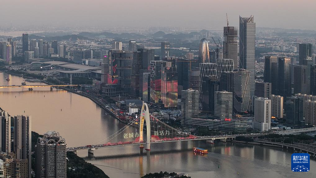 廣州市區(qū)沐浴在夕陽余暉之中(2024年11月29日攝,無人機(jī)照片)。