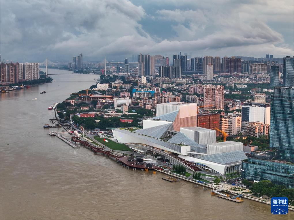 白鵝潭大灣區(qū)藝術(shù)中心宛如“文化巨輪”揚帆珠江(2024年4月27日攝,無人機(jī)照片)。