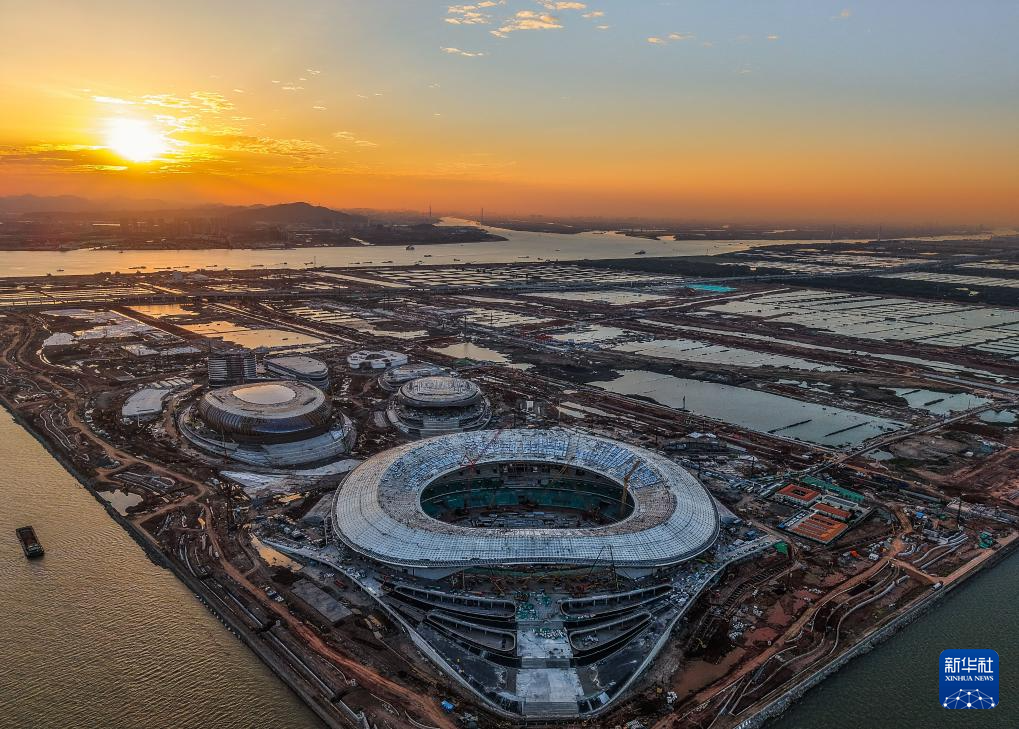 位于粵港澳大灣區(qū)“地理幾何中心”的廣州南沙全民文化體育綜合體建設(shè)進(jìn)展順利(2024年11月27日攝,無人機(jī)照片)。