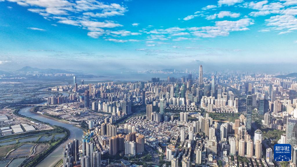 這是貫穿深圳福田CBD、市民中心、蓮花山公園的深圳中軸線(2024年8月27日攝,無人機(jī)全景照片)。