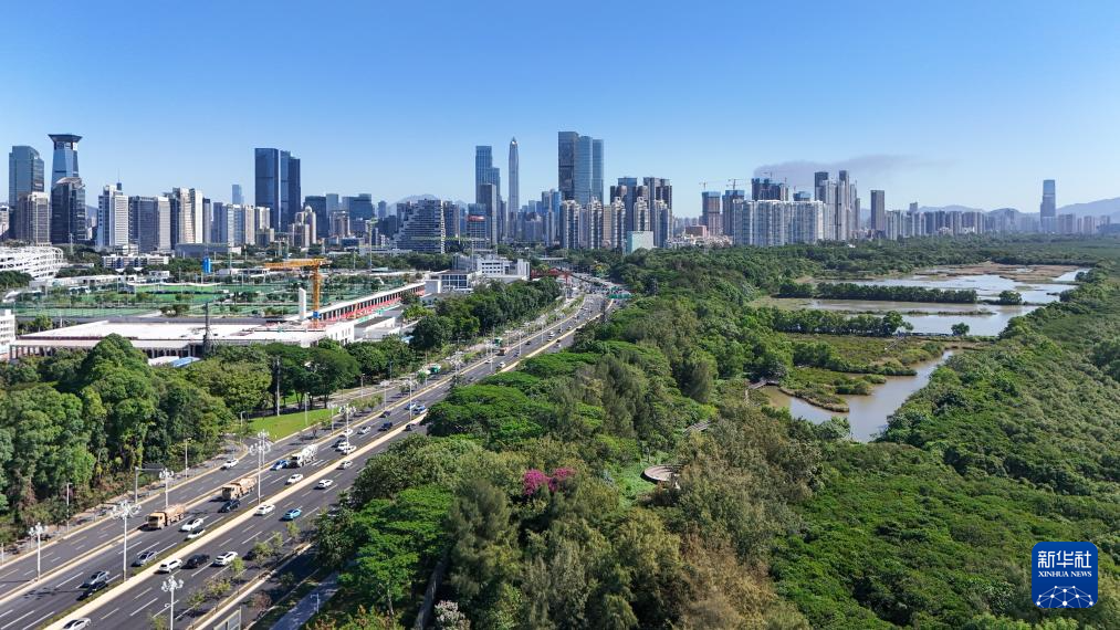 這是位于深圳福田紅樹林濕地(2024年11月29日攝,無人機(jī)照片)。