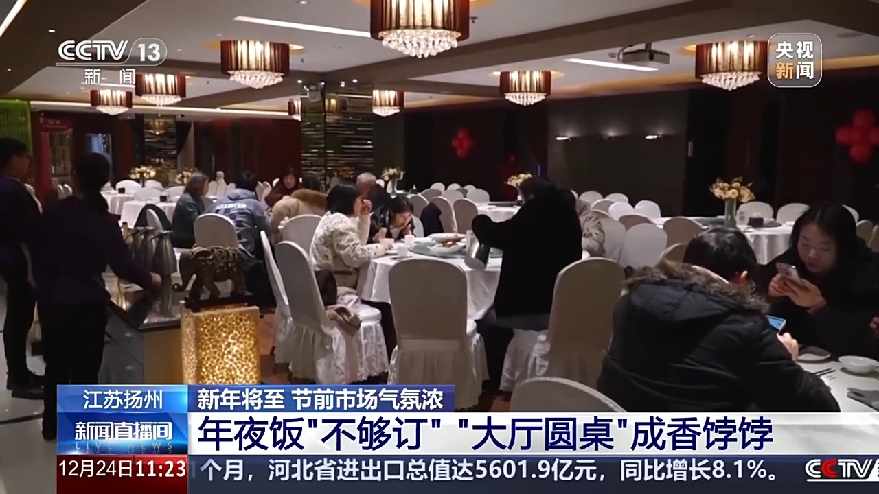 在江蘇揚(yáng)州,記者在一家酒店餐飲中心看到,預(yù)訂年夜飯的電話響個(gè)不停。據(jù)酒店經(jīng)理介紹,目前年夜飯的包廂已經(jīng)全部售罄,數(shù)量不多的“大廳圓桌”也成了搶手的香餑餑,針對(duì)年夜飯“不夠訂”的情況,不少酒店也紛紛增加了大廳散客點(diǎn)餐區(qū)。為了讓市民游客有更好的用餐體驗(yàn),當(dāng)?shù)馗鞑惋嫷甓荚谀暌癸埐藛紊锨笮虑笞?,同時(shí)增加表演、互動(dòng)游戲等元素。